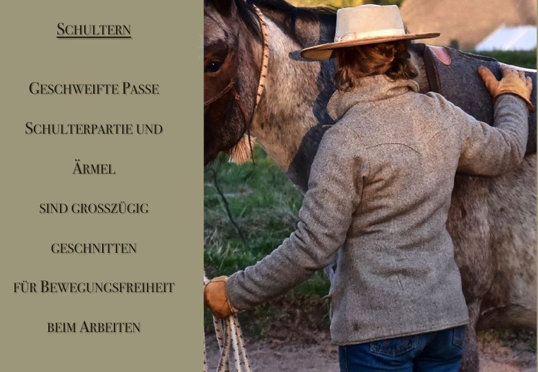 Es handelt sich um "Ranch wear"und das ist nicht nur ein Slogan, sondern maßgebend für den Schnitt. Auf einem Hof fallen viele harte Arbeiten an und sie formen unseren Körper.