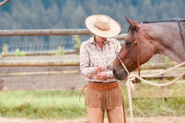 Eine Bluse zum Reiten sollte nicht zu eng in der Taille sein, damit man entspannt sitzen kann, ohne sich unwohl zu