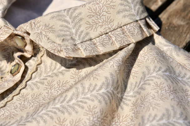 Die Ärmel haben eine hohe Armkugel mit einer Mehrweite, die an der Schulter in Falten gelegt ist, so dass sie weit genug sind, ohne dass Ihr wie ein Bonbon
